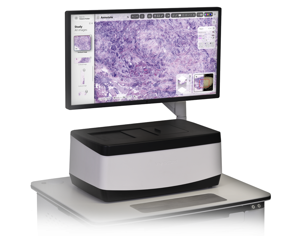 Le VivaScope 2500 scanne rapidement le tissu excisé et révèle la morphologie cellulaire directement au chevet du patient. Le tissu examiné reste intact et peut être conservé pour une analyse histopathologique ultérieure.