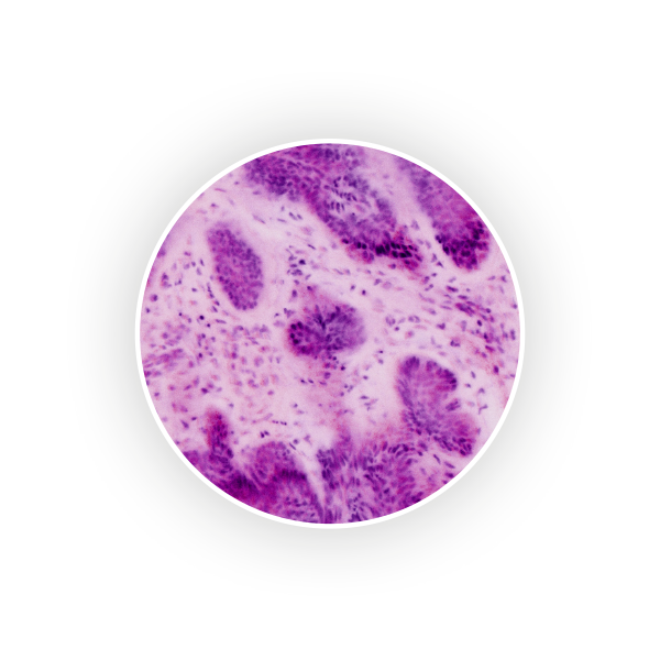 VivaScope Ex Vivo technology allows for direct pathological assesment during surgery. Like H&E staining, VivaScope images are generated from two components. Two lasers of different wavelengths create two distinct images, a fluorescence image and a reflectance image. Both signals are scanned simultaneously and are used to create pseudo-colored images. The device’s software uses an algorithm to translate the acquired image information into colors that resemble H&E.